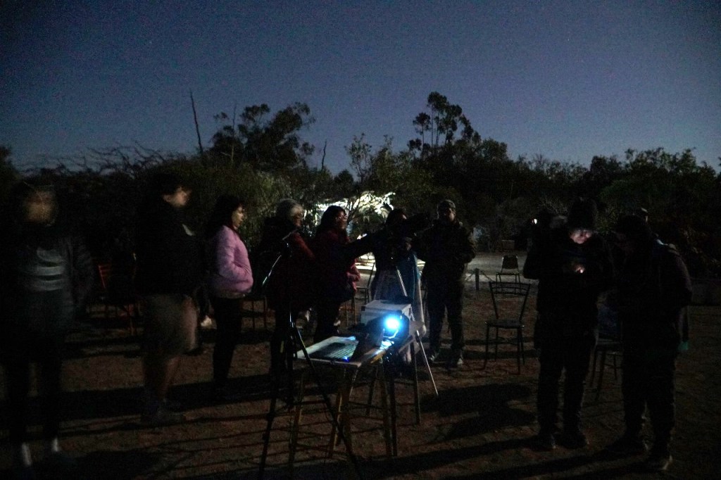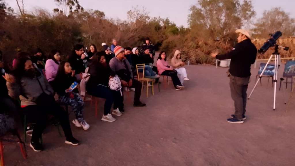 Al caer la noche, la actividad continuó con una charla sobre estrellas, constelaciones y planetas, dirigida por Eliseo Ibaca, director de Astro Urbano Chile. Esta charla resultó sumamente interesante para todo el público, especialmente para quienes no están acostumbrados a observar el cielo nocturno. La mitología y la ciencia se fusionaron bajo el vasto cielo estrellado.